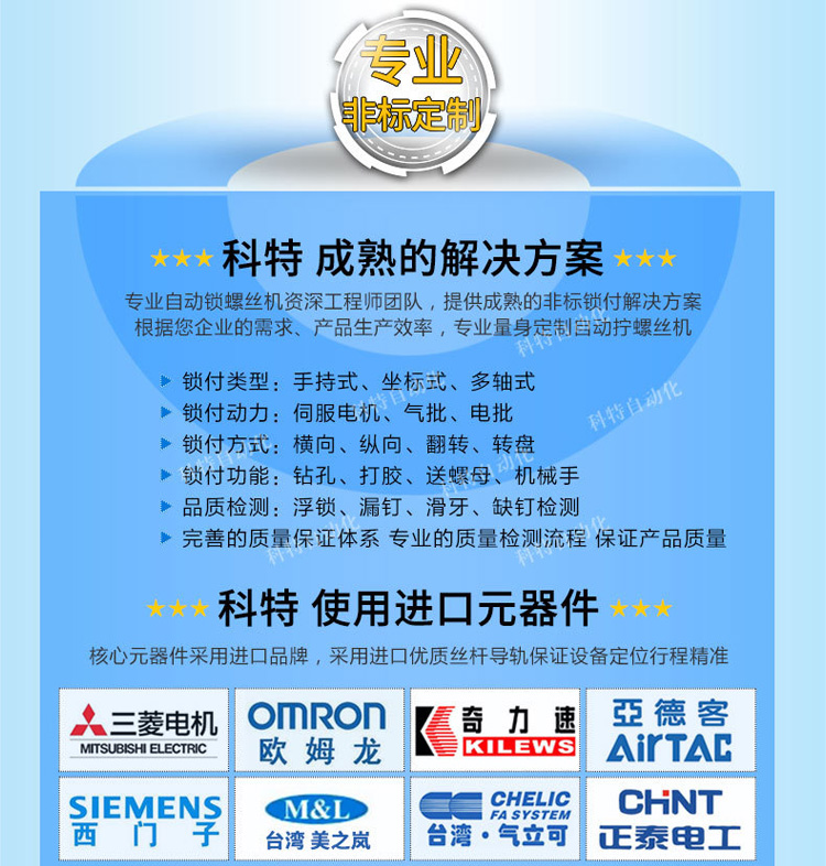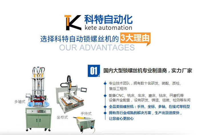 歡迎光臨科特自動(dòng)化官網(wǎng),專注自動(dòng)鎖螺絲機(jī)設(shè)備研發(fā)、生產(chǎn)、銷售! 關(guān)于我們| 視頻展示| 聯(lián)系我們